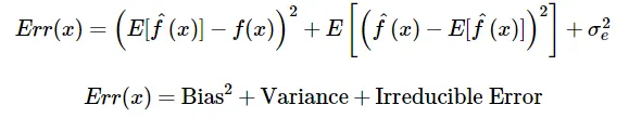 Total error = Bias^2 + Variance + Irreducible error