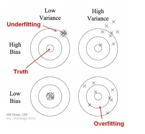 Bias: The difference between the average prediction of our model and the correct value which we are trying to predict.