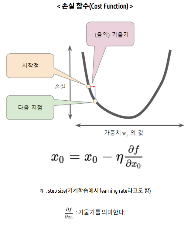 taking the derivative (the tangential line to a function) of our cost function. Theslopeof thetangent lineis the value of the derivative at that point and it will give us adirection to move towards. We make steps down the cost function in the direction with the steepest descent. -