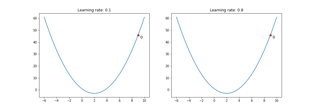If the learning rate is too big, the loss will bounce around and may not reach the local minimum.